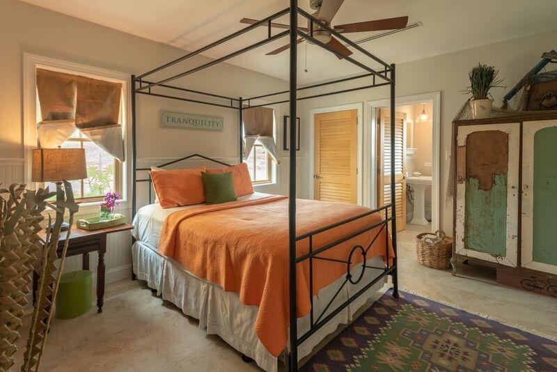 The spacious master bedroom suite has a king size bed and large bathroom with bath tub. Spectacular views overlooking the Caribbean Sea and the California lighthouse can be enjoyed from the wrap around balcony. The second bedroom also located upstairs has a queen size bed and bathroom.On the main floor there are two additional bedrooms, each bedroom has it's own bathroom, one bedroom has a queen size bed and the second bedroom has two twin-size beds. In total our home offers four bedrooms, four bathrooms and a powder room and can comfortably accommodate up to 8 guests.