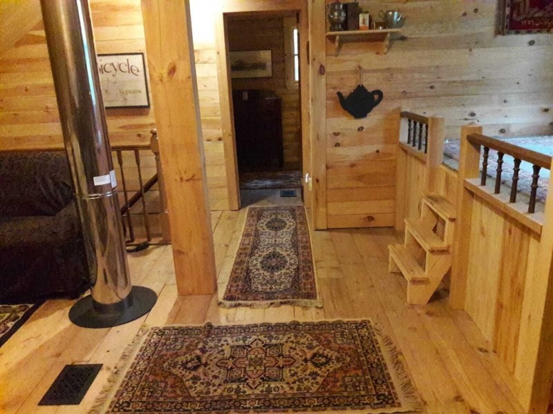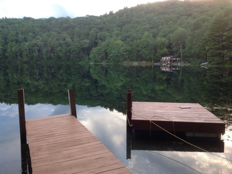 Log cabin located in a serene setting of green mountains and a quiet lake. Sleeps upto 6 people. Lakefront breathtaking view. One private bedroom and a spacious loft with more beds. Kitchen with pots and dishes. Stove refrigerator and coffee maker. A canoe and a paddle boat is available on request with extra charge. One and a half bath. Ample parking space. Close to Killington ski resort (45 minutes to one hour)