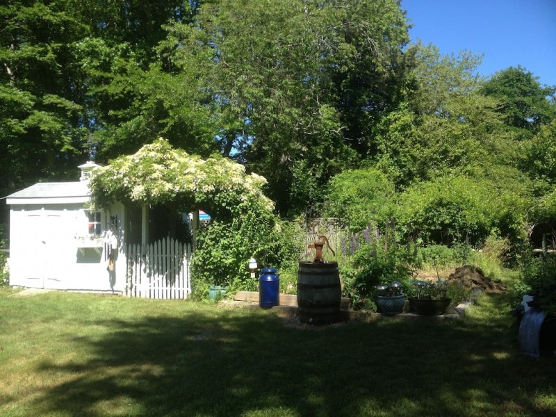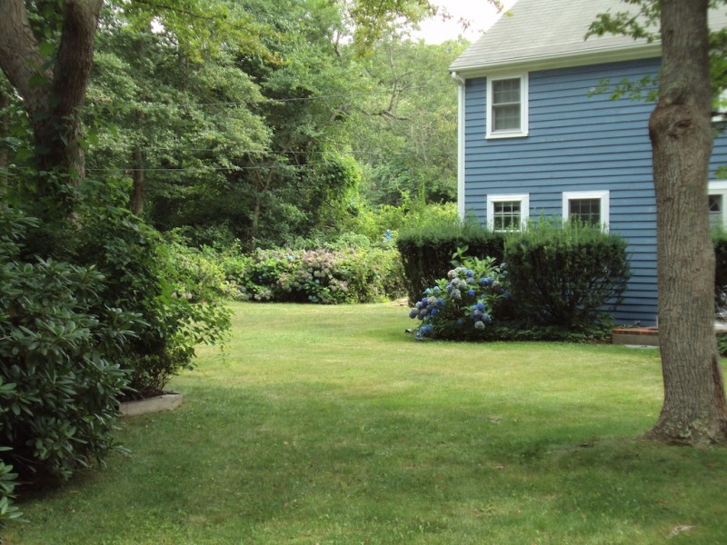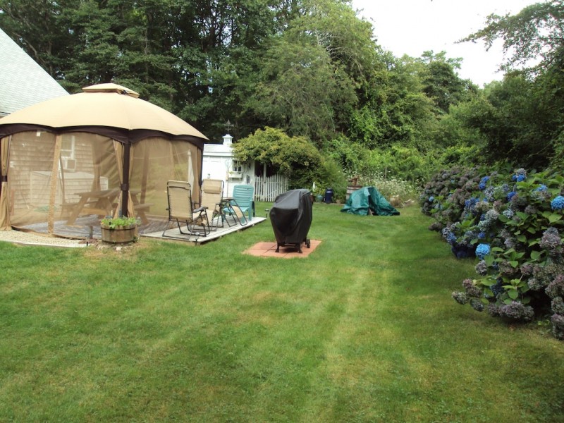 The kitchen door opens up to the back patio with a picnic table and umbrella, a nice spot for grilling dinner on the gas grill and gas is provided. The landscaping around the boundary lines are established and provide nice privacy, not to mention the secret garden where you can relax and just listen to the birds from the abutting conservation land.
