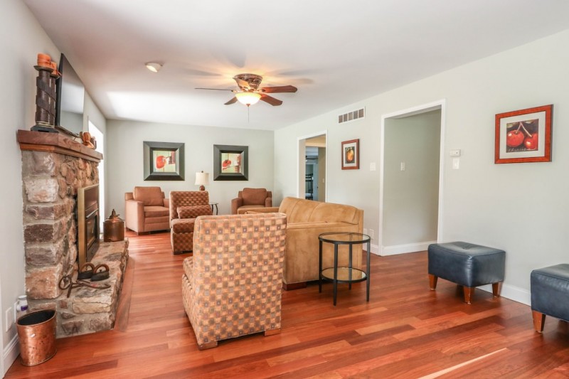The best of Upper Bucks county on over 10 acres of beautiful land. Heated in-ground pool (Seasonal, open May 1 - Sept 30th. Heated to 82 degrees when necessary) with massive pool deck for sunbathing and relaxing. Interior has plenty of space, almost 5,000 square feet. There is the main home and attached guest house, all of which are for the guest to use. There are 2 kitchens, 2 refrigerators, 2 washers and 2 dryers. Super fast wifi. Plenty of TV channels. Great place to relax inside or out!