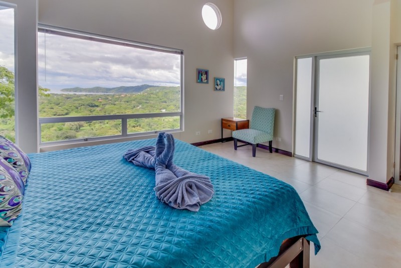Marvel at panoramic views of the lush shores of Guanacaste Province when you escape to this modern hillside home in Playas del Coco! Go up the stairs to your lovely two-level home and enjoy the views of the Pacific Ocean as you wake up each morning, a quick and easy drive to the beach each afternoon, and shared amenities that include an outdoor pool with a bar, a barbecue area, and spectacular surroundings!