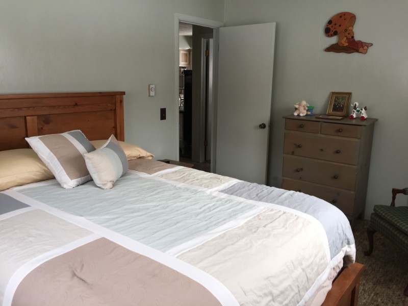 Trapper Peak is to the North and the Sapphire Mountain Range is to the East. The house has central heating and air throughout for added comfort when needed. The main/master bedroom has a king-sized bed, while the 3 remaining rooms are furnished with a queen-sized bed, and 2 trundle beds, comfortable for sleeping 8 people. The spacious living room is furnished with a comfortable sofa and 3 chairs. The kitchen is perfect for dining as it is equipped with dining and cookware. The dining table seats 8 people. There are two full bathrooms, one each located downstairs and upstairs. Crack a window and listen to the amazing sounds of Laird creek from any room in the house!