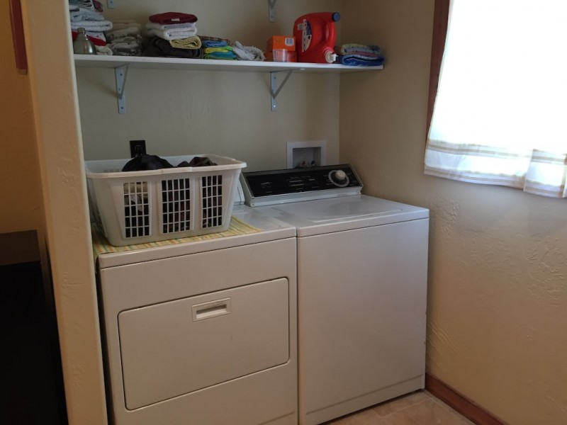 The family room has a wood-burning fireplace, TV with satellite, internet. The kitchen has a full stove, microwave, dishwasher and great views which is a pleasure to cook in. There is a washer and dryer. The dining area has open windows to watch the eagles, deer and elk. Elk and mule deer are often found grazing on the property and surrounding mountains.There is a back deck where you can enjoy beautiful scenery and the creek.