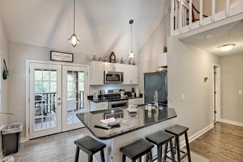 The upgraded kitchen has brand new granite countertops installed and beautiful stainless steel appliances including a refrigerator, stove, oven, and dishwasher. The kitchen is packed with a variety of essential accessories, utensils, cookware, microwave, and coffeemaker to meet all of your needs.