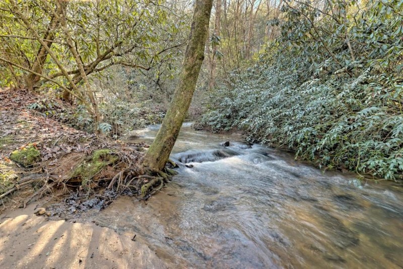 Pass through the sliding glass door and out onto your back deck. You'll find a gas grill and table and chairs or step down the back steps into your grassy yard and enjoy a romantic meal or a glass of wine from one of the local wineries at your creekside bistro table.