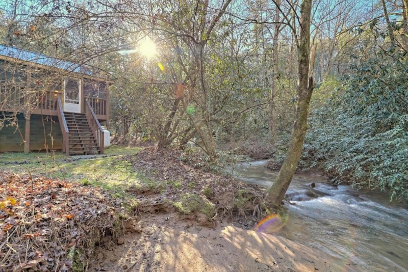 Perfect for that quiet escape from the rat race, this adorable and newly remodeled, creekside cabin features a front porch, back patio, private hot tub, a small fire pit, and a jetted tub. You can even bring your dog.