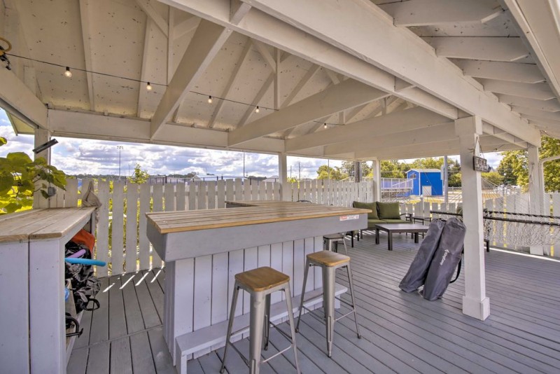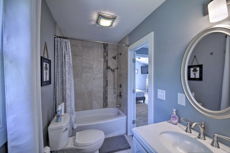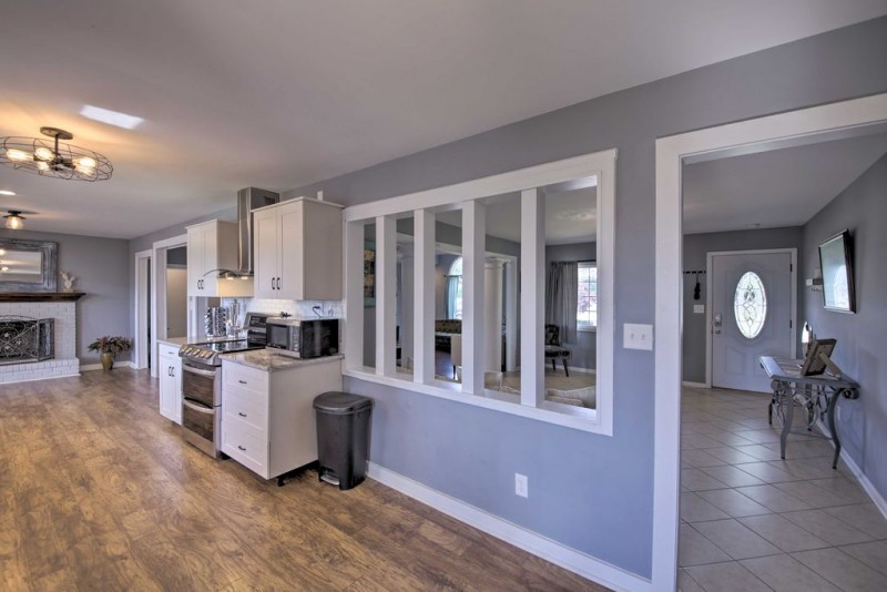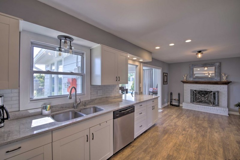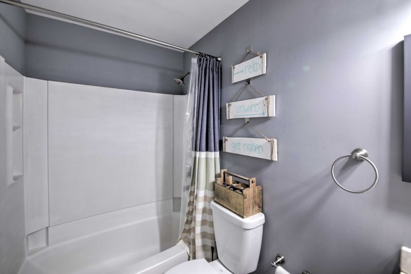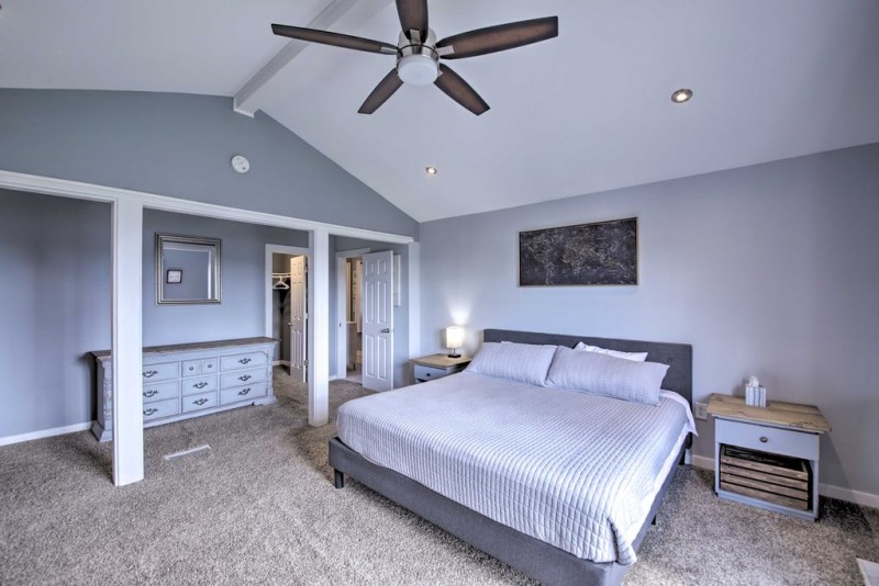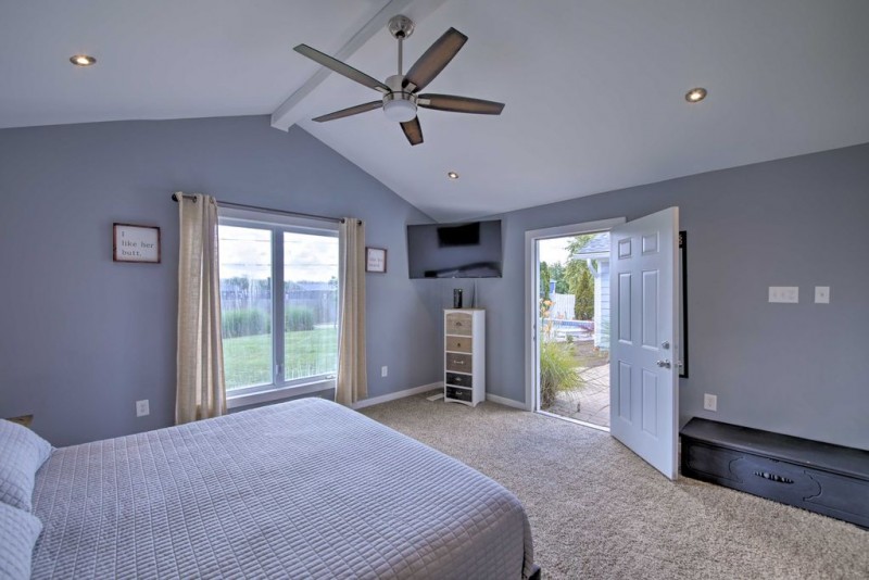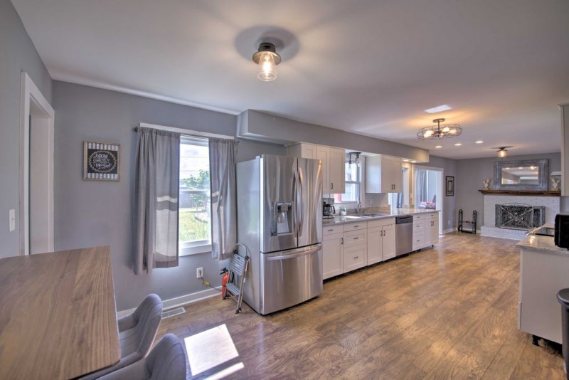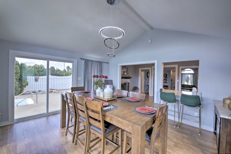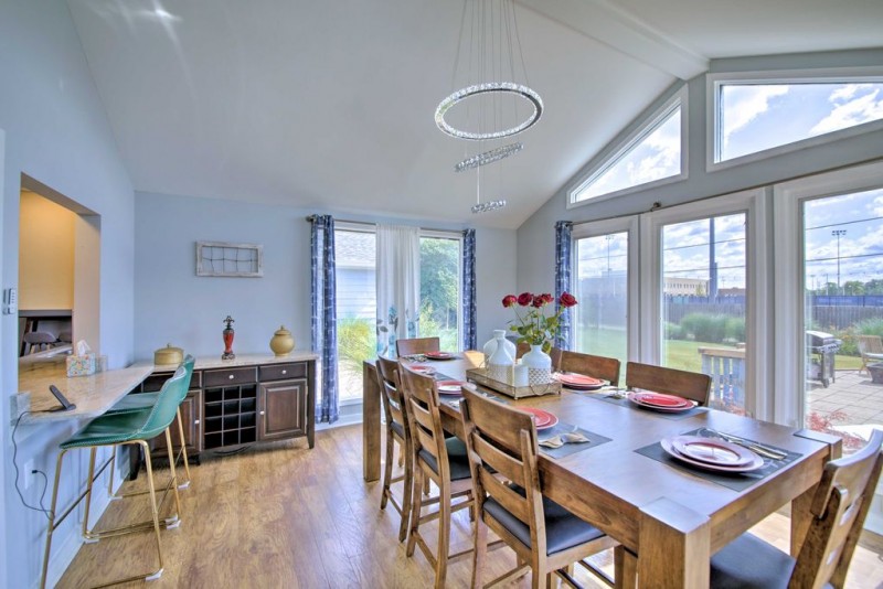 When the temperature drops, savor meals in the dining room highlighted by a chic chandelier! Afterward, gather in the living room for family movie night on the flat-screen cable TV or head back outside to warm up around the fire pit.