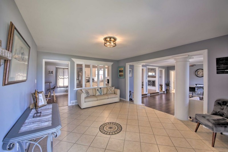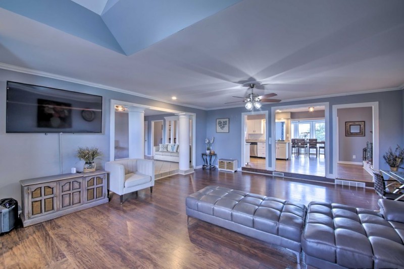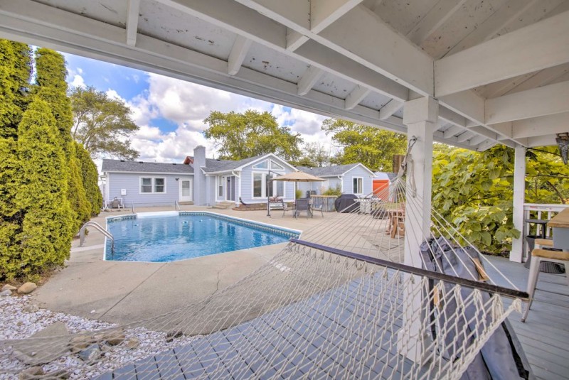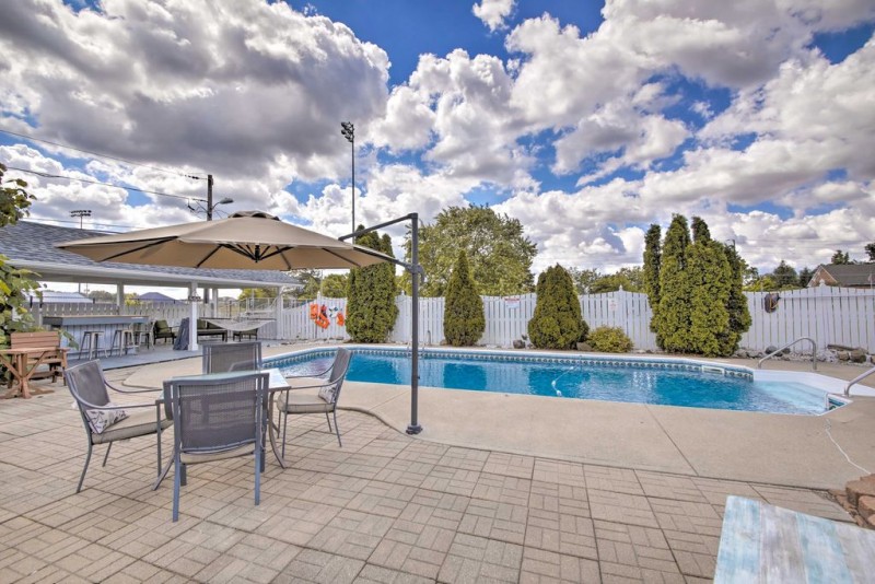 Relish the suburban splendors of Franklin Township and stay at this fully renovated 5-bedroom, 4-bathroom vacation rental home! With a sprawling 4,248-square-foot interior, private pool, and furnished porch, this Indianapolis getaway is the perfect home base for large groups of 14. Spend your days golfing the fairways of Dakota Landing Golf Course right across the street, or make your way downtown only 20 minutes away for some city adventures at the many sports venues and museums!