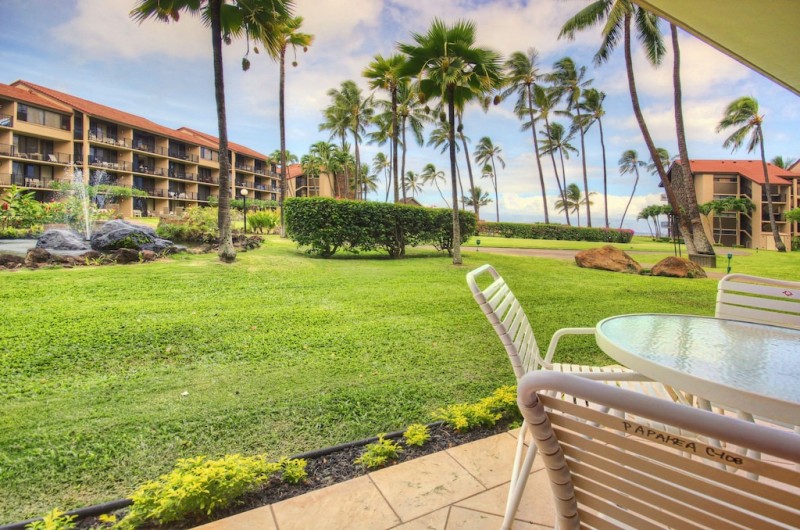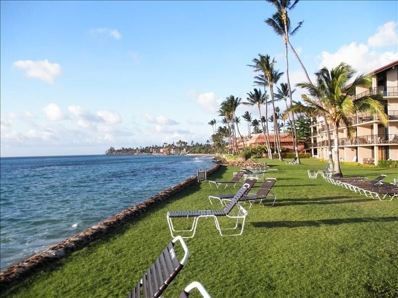 The Papakea Resort is 13 acres of lush green plants, tropical flowers, and plumeria trees.
