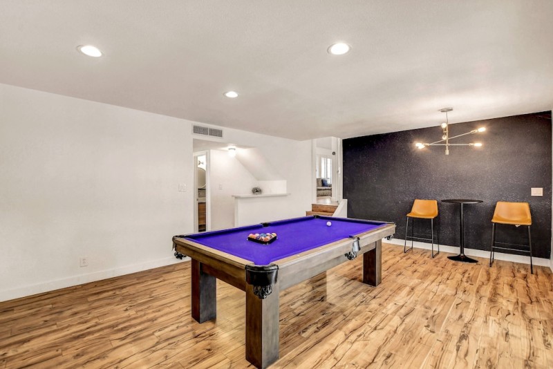 4 bedrooms, 3 baths, with a yoga sun room and a pool table