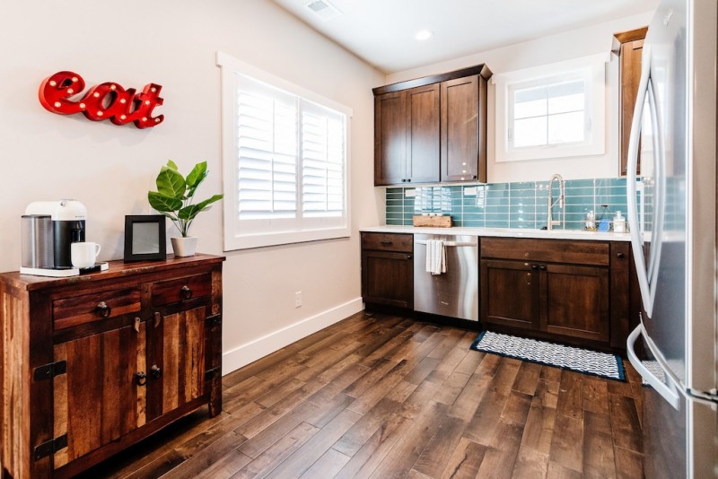 Engineered hardwood floors, ceiling fans, A/C, LED can lighting, quartz countertops, stainless steel appliances, 9 ft ceilings - everything is brand new and super clean.