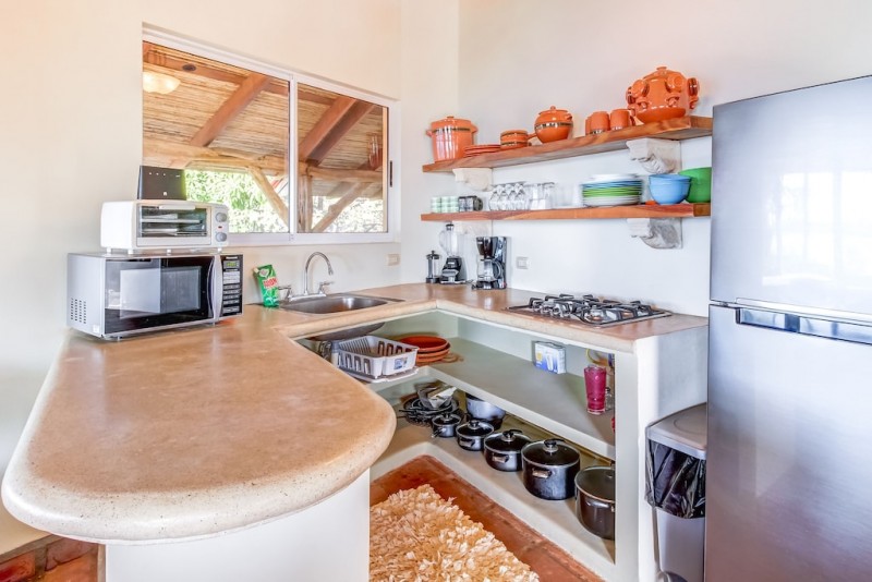 This bright and coastal Costa Rican house offers everything you need to have the time of your life! Featuring a bright interior décor with notes of wood, a small, yet well-equipped kitchen with everything you need or a BBQ grill to cook your meals outside, a spacious living room with comfortable sofas to kick back and relax after swimming in the private pool, this vacation rental is what dreams are made of! Plus, you can step outside and enjoy the magnificent ocean views either from the hammock or the lounge chairs next to the pool.