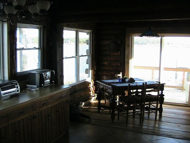 Fully furnished well-equipped real log cabin on shallow Winter Harbor. Ten minute boat ride to the Bay. One bedroom down and two beds up in the loft, plus futon in the great room. All beds double. One bath and an outdoor shower, too! Antenna TV, dvd/vhs, cd stereo. DW, W/D, gas grill. Fully equipped kitchen. Pier attached to waterfront deck. Part of the deck is covered making a great place to hang out. Excellent bird-watching.