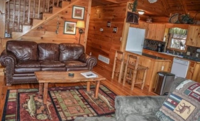 This rustic and welcoming log cabin sits right on the Toccoa River and is perfect for your next fly fishing getaway. Spend your mornings down by the river with a hot cup of coffee, your favorite bait, and some good music to while away the hours. Later, challenge a friend to some foosball in the game area. The hot tub is the perfect place to enjoy your next mystery novel with a glass of wine. Tonight, why not enjoy family movie night in the Media Room with the 56-inch smart TV, Bose sound system, and reclining leather movie seats? Be sure to use the full kitchen to microwave lots of popcorn! Later, stargaze with the kids next to a dwindling fire down at the grassy riverside firepit.