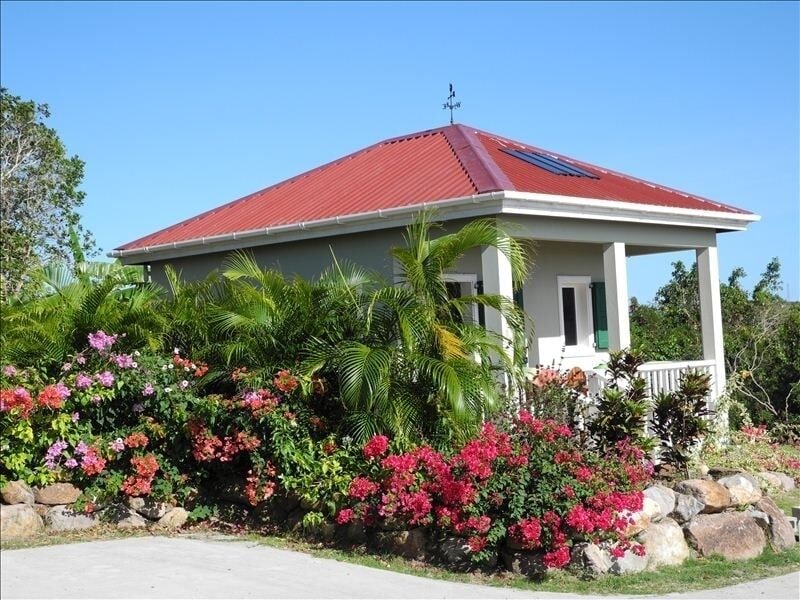 Keywords: new cottage, gardens, hillside, views, Nevis, budget, self-contained, kitchen & bathroom, one bedroom