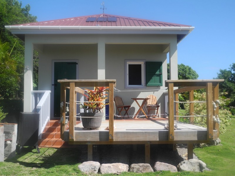 The two cottages have a private terrace with outdoor chairs & table as well as the surrounding garden which is yours to relax and enjoy. The cottages were built to be environmentally friendly and self-sustaining with solar-powered water heaters, 12v lighting, and rainwater collection.