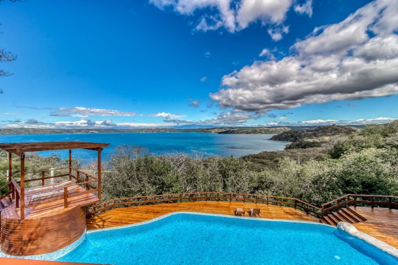 Treat yourself to an unforgettable stay at this luxurious getaway with stunning views of El Golfo de Papagayo. The open layout, intentional decor, and full kitchen will make each guest feel right at home. There is no need to leave this sanctuary, as the private pool will accommodate all guests comfortably and there are numerous areas to lounge outdoors such as the expansive deck and terrace. For fun with family and friends, there is a pool table and large flat-screen TV for all to enjoy. When dinner time comes around, simply step outside to a gazebo equipped with a large gas grill to cook up a juicy burger or grill some veggies! This home is a great choice for people who want to spend the day by the pool but also be walking distance to a beautiful white sand beach!