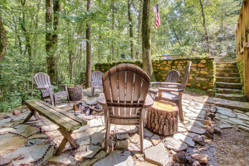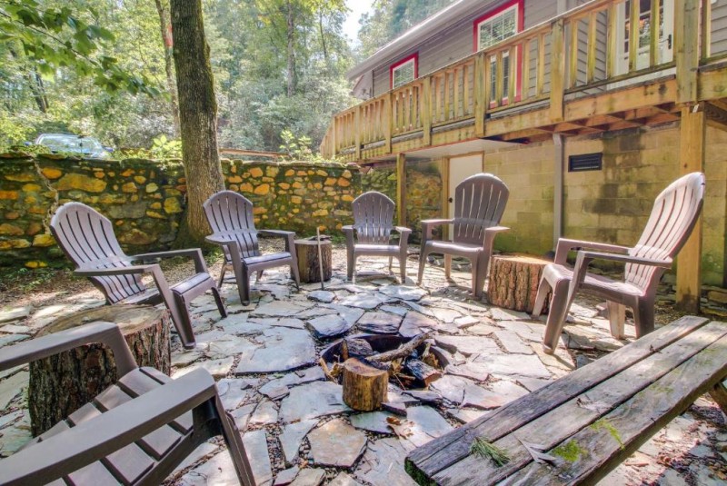The open kitchen, complete with updated stainless steel appliances, provides plenty of space in which to prepare a meal for the whole family. A dining table for six is placed near a kitchen window, but the screened-in deck and fire pit area boast lots of seating as well. While you sit outside and enjoy the mountain breeze or fire, the dishwasher will handle the cleanup.