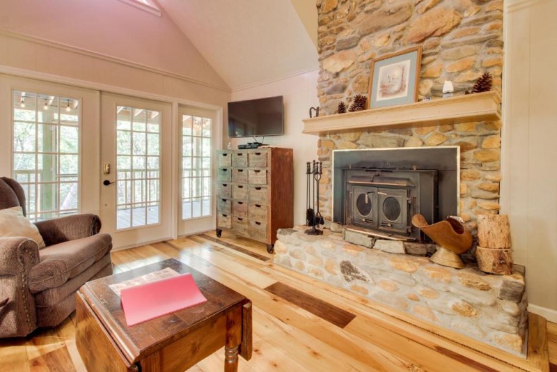 When you walk into this home, you'll notice its beautiful hardwood floors, and the new appliances may catch your eye too. The living room features tons of comfortable seating space, a flatscreen TV and DVD player, and a seasonal wood-burning fireplace. The lack of cable and phones will allow you to escape technological distractions and truly let go for a bit. However, there's WiFi available just in case.
