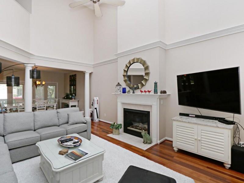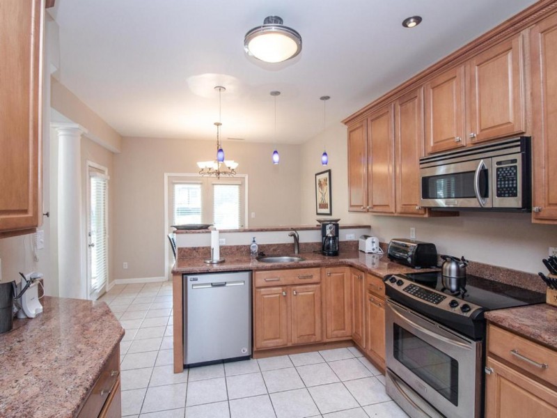 Great escape on the lake! There's room for the whole family in this updated two-story 4-bedroom (with a spacious second floor landing), 3.5-bath lakefront getaway! With screened porch and waterfront patio, this coastal retreat's main level offers a living room, dining room, well-equipped eat-in kitchen, half bathroom and a master suite. The top floor is home to a spacious landing and the remaining three bedrooms, including the second master suite, with private sundeck. Central air conditioning, washer, dryer and more. 5 TVs, 4 DVDs, gas fireplace, Wifi. Notes: This Sea Colony vacation rental features wood flooring in the living and dining areas and carpet in the bedrooms.